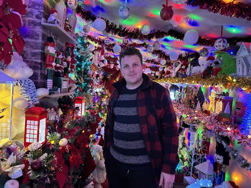 Daniel has spent more than two and a half months decorating his mum Jeanette’s home on St Piran Close, covering the property with miles of lights, giant candy canes, tinsel and a striking 20-foot Christmas tree made entirely from illuminated decorations.